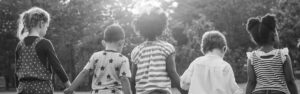 Black,And,White,Image,Of,Children,Walking,At,The,Park